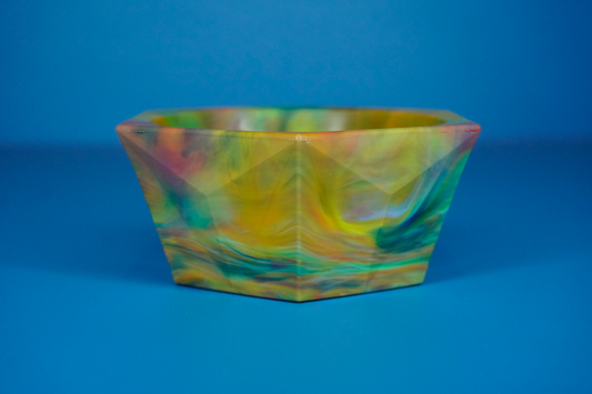 Frilled Decorative Recycled Bowl - Light Blue, Red, Yellow, Green