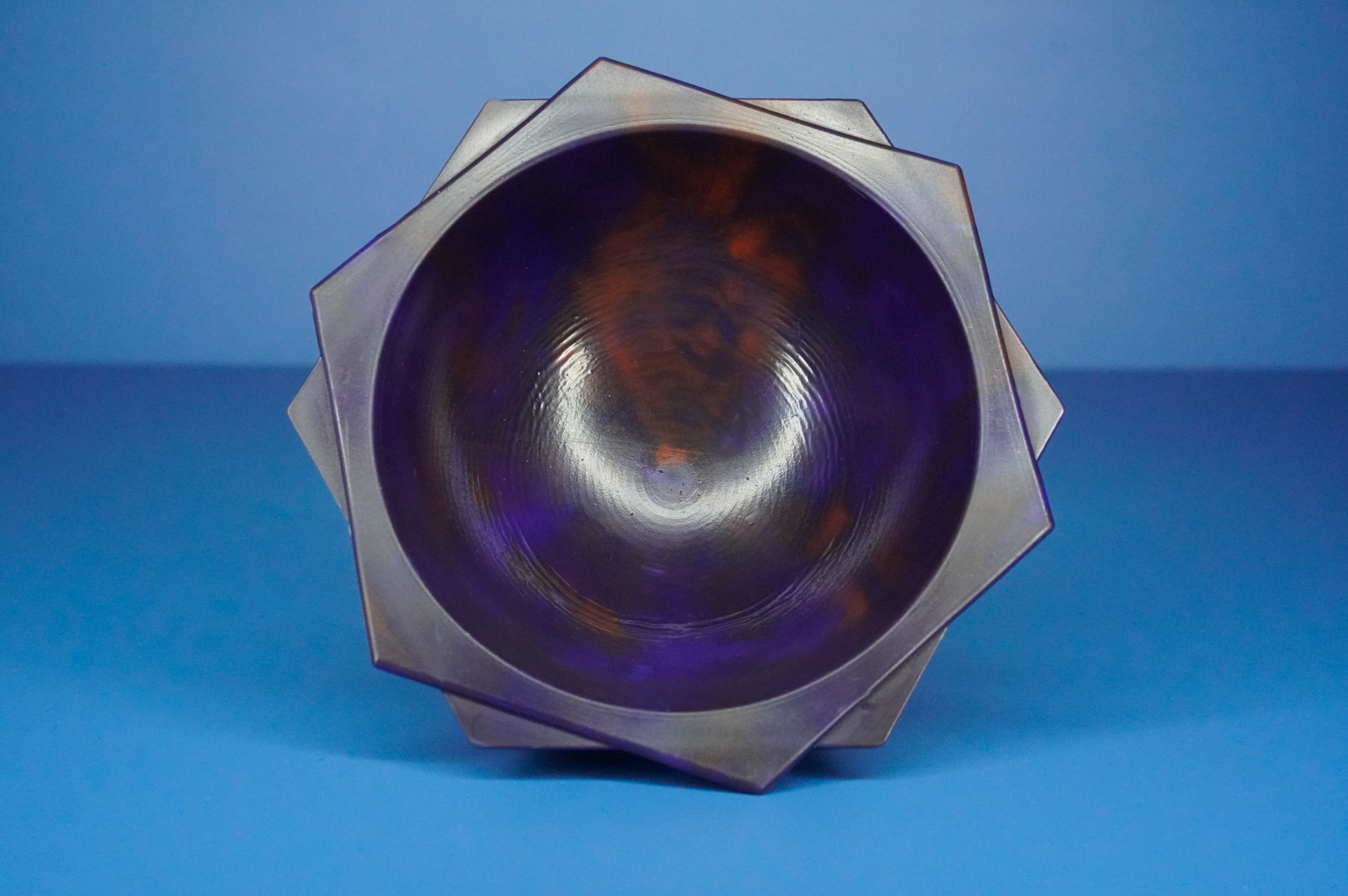 Frilled Decorative Recycled Bowl - Dark Blue, Red