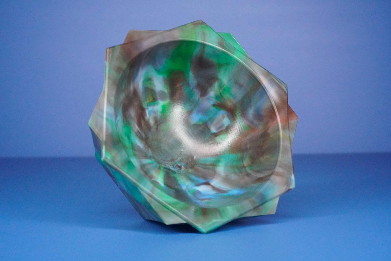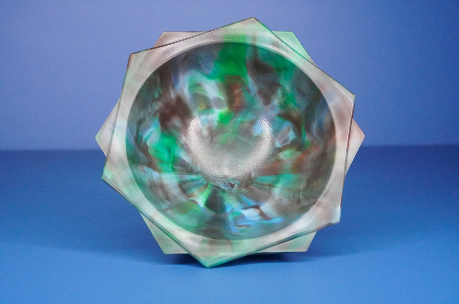 Frilled Decorative Recycled Bowl - Light Blue, Brown, Green