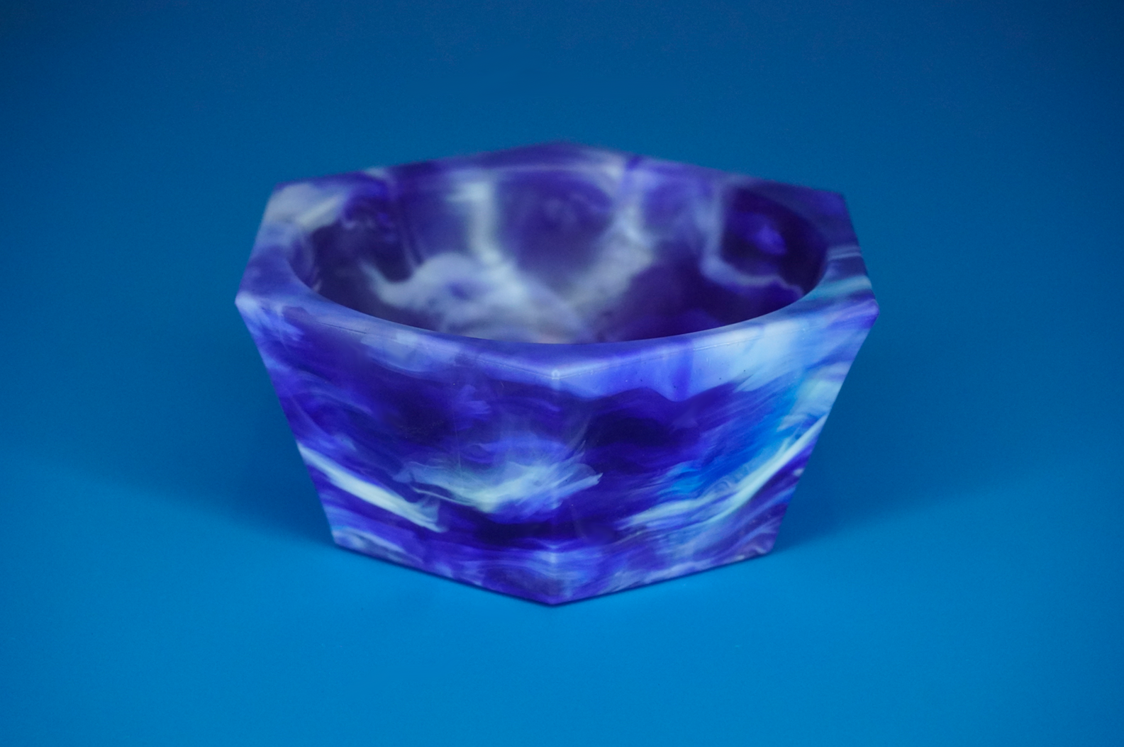 Every item is one of a kind! While this bowl is made using the same colours, the plastic melts together in all sorts of unique ways. What you receive may slightly differ than what is pictured.