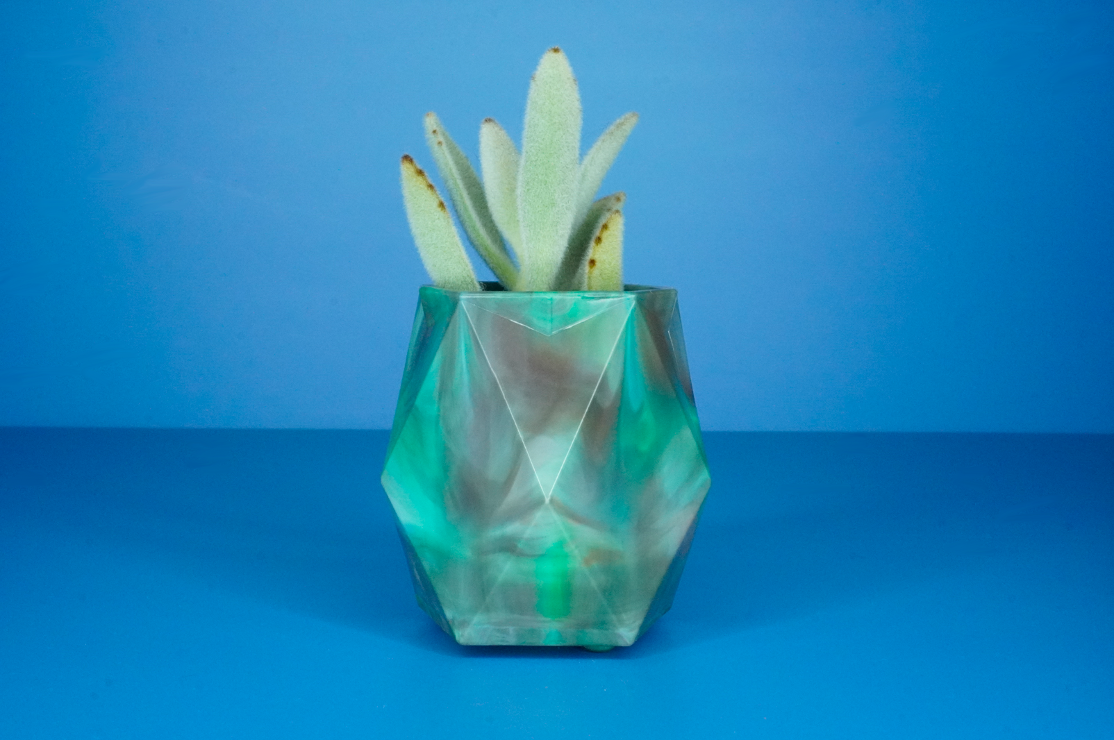 Every item is one of a kind! While each of these planters is made using the same colours, the plastic melts together in all sorts of unique ways. What you receive may slightly differ than what is pictured.