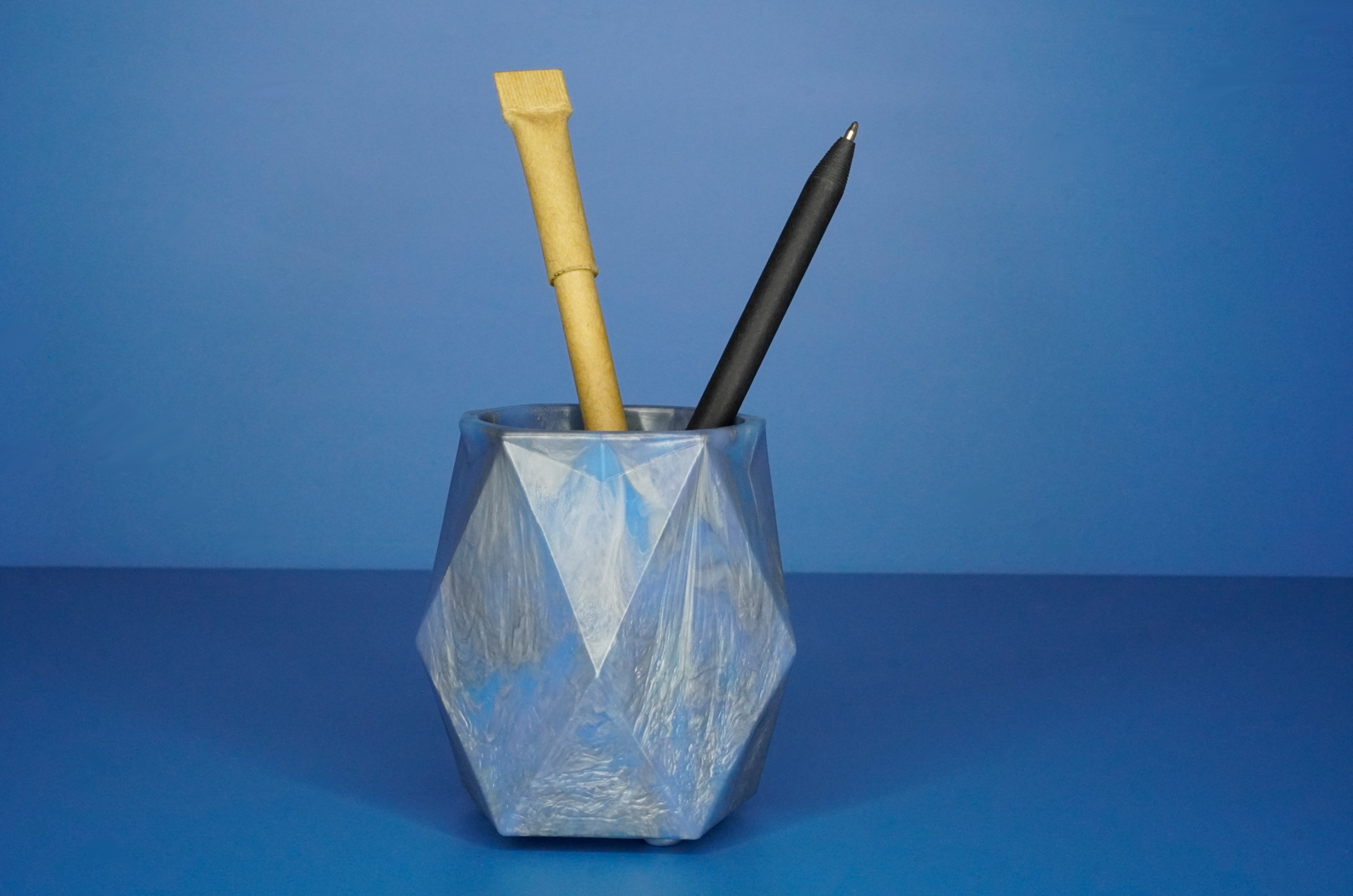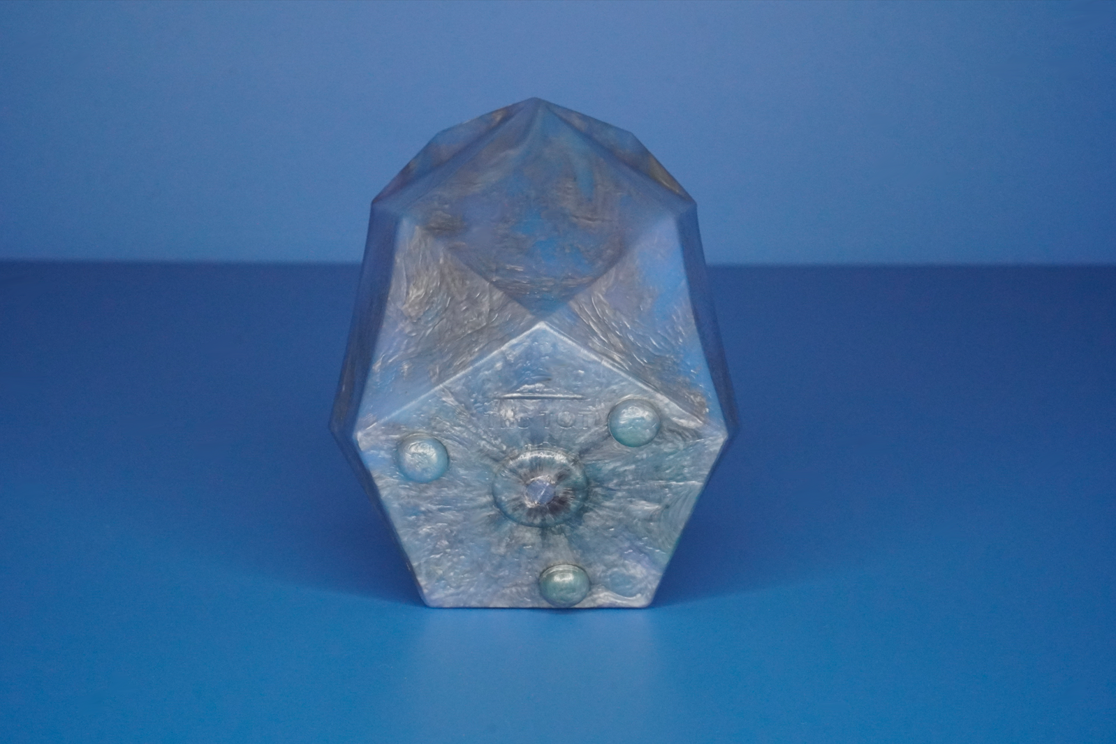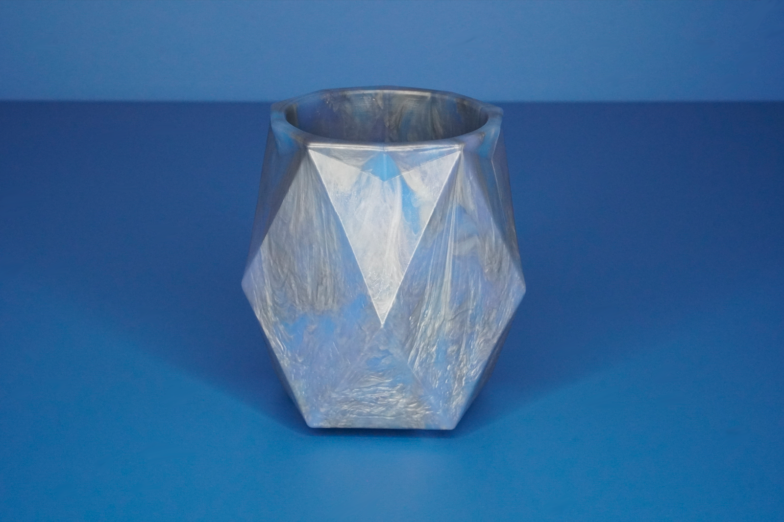This pot is recycled from approximately forty bottle lids in the colours of silver and translucent blue. That means with this purchase you are helping divert plastic waste from landfill. Thank you for making thoughtful purchases and helping in our mission to go below the tip of the plastic waste iceberg!