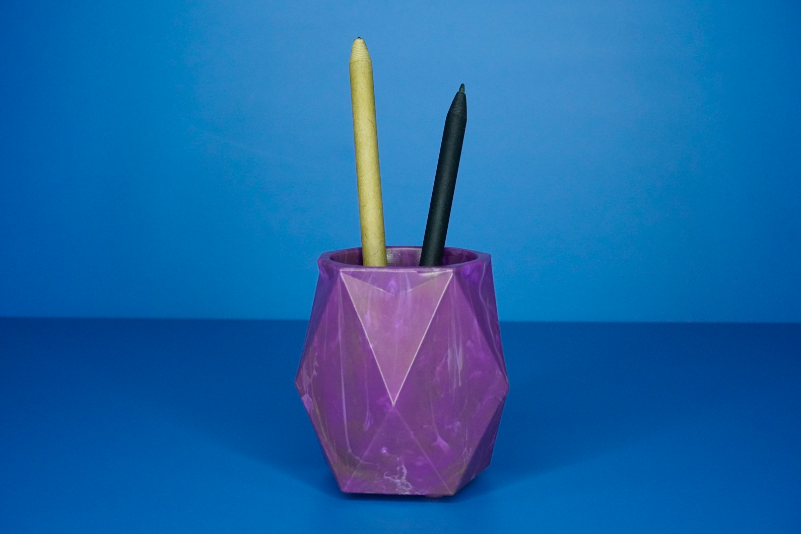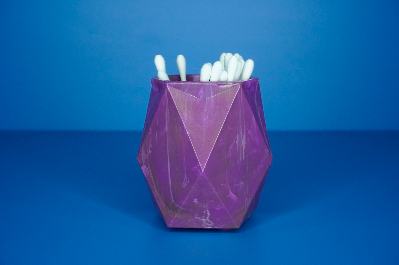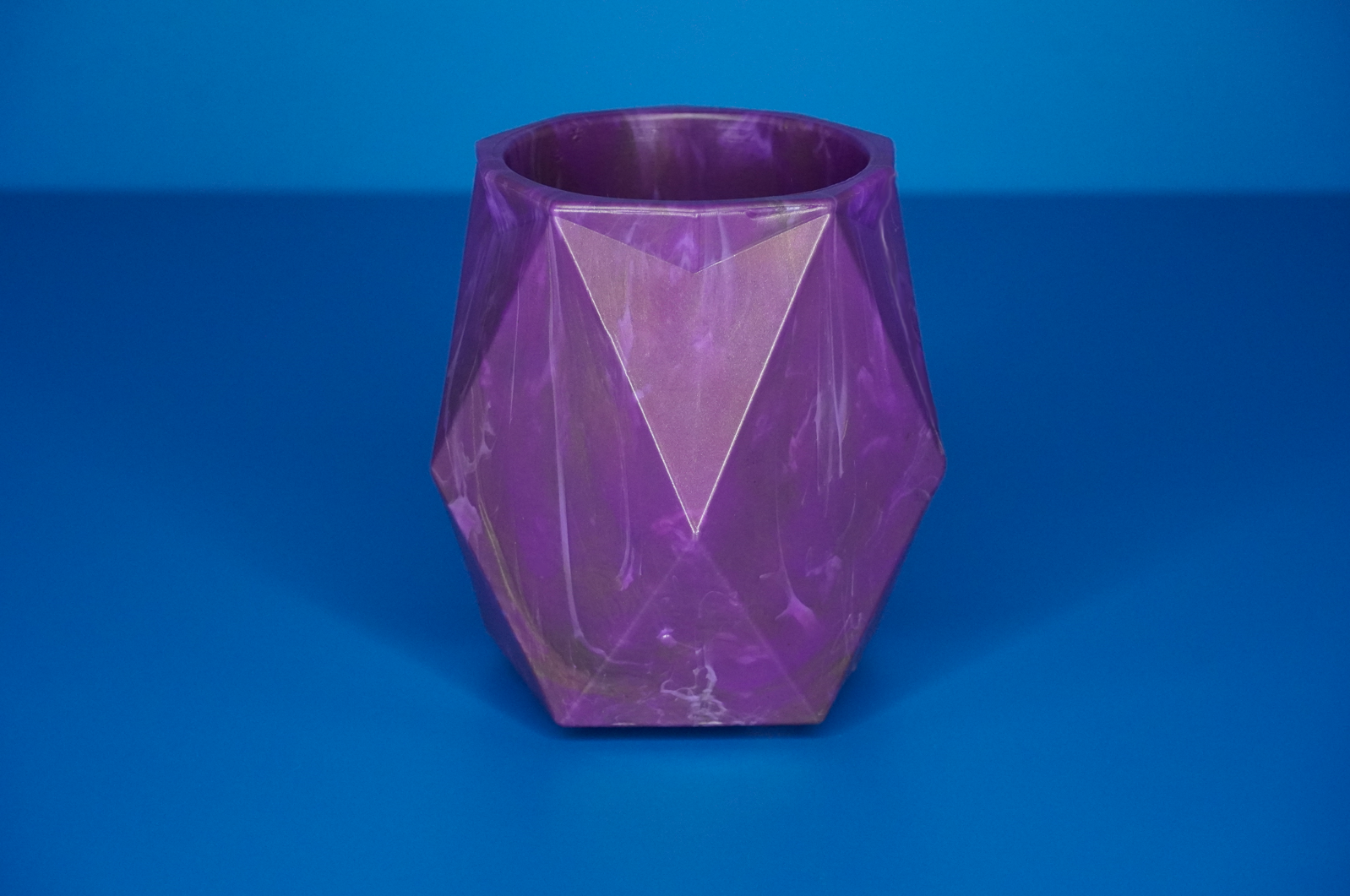 This pot is recycled from approximately forty bottle lids in the colours of purple and gold. That means with this purchase you are helping divert plastic waste from landfill. Thank you for making thoughtful purchases and helping in our mission to go below the tip of the plastic waste iceberg!