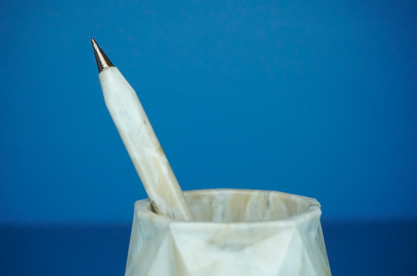 This pen is recycled from bottle lids in the colours of clear, white, gold and a bit of black. That means with this purchase you are helping divert plastic waste from landfill. Thank you for making thoughtful purchases and helping in our mission to go below the tip of the plastic waste iceberg!