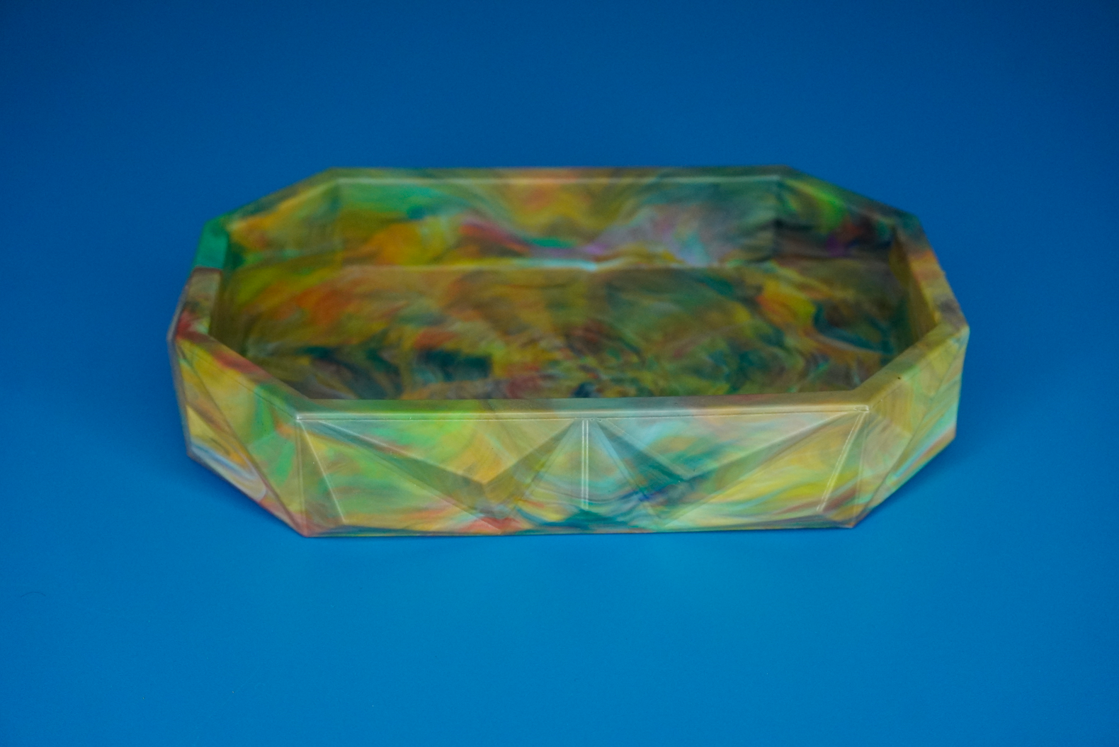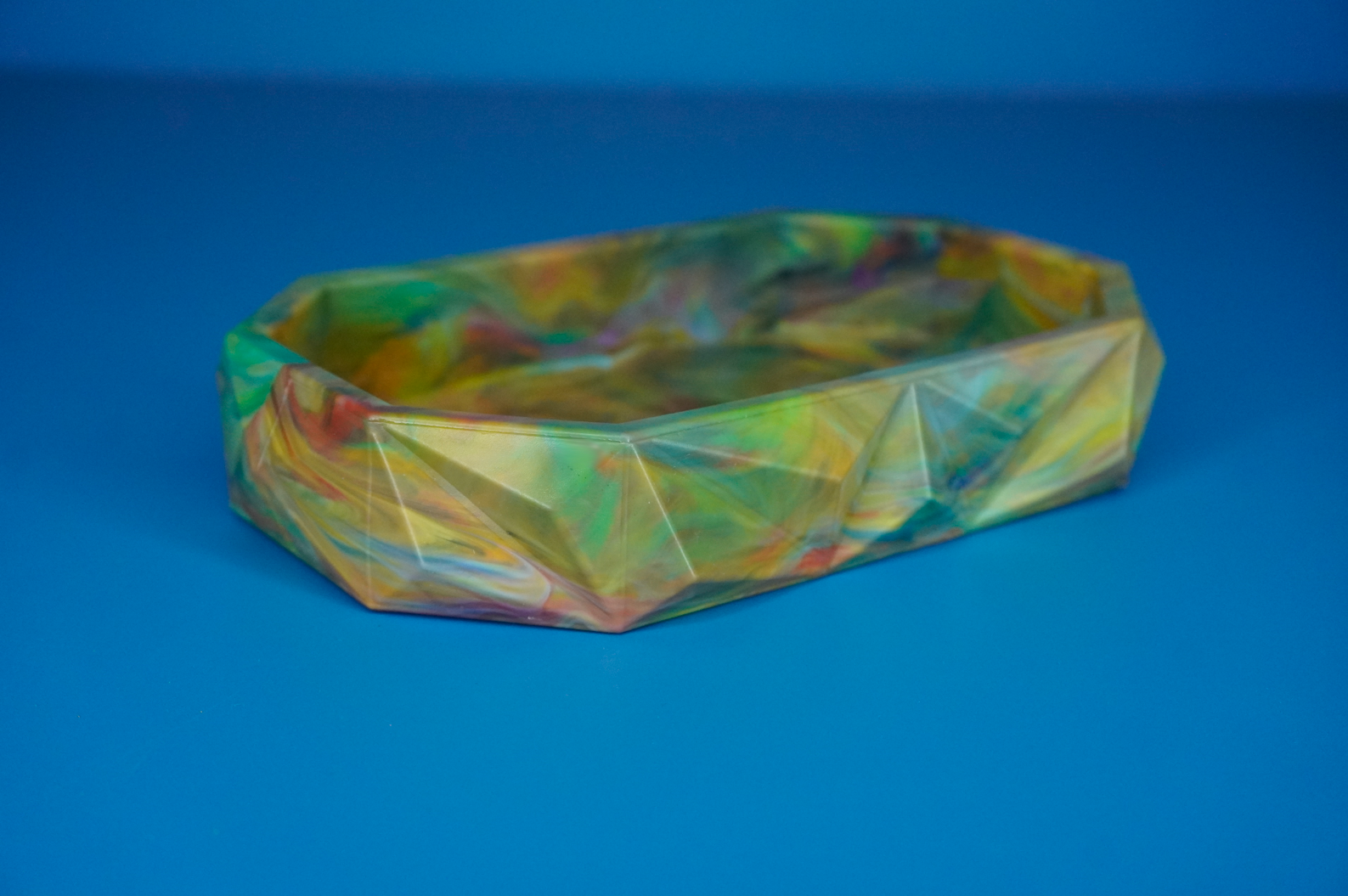 Every item is one of a kind! While this tray is made using the same colours, the plastic melts together in all sorts of unique ways. What you receive may slightly differ than what is pictured.